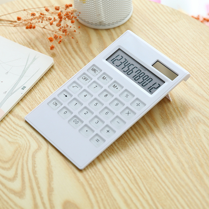 Home » Products » Calculator » 12 Digit Minimalist Large Screen Calculator Battery Or Solar Power Scientific Plastic Calculator Dual Power Desktop Calculator