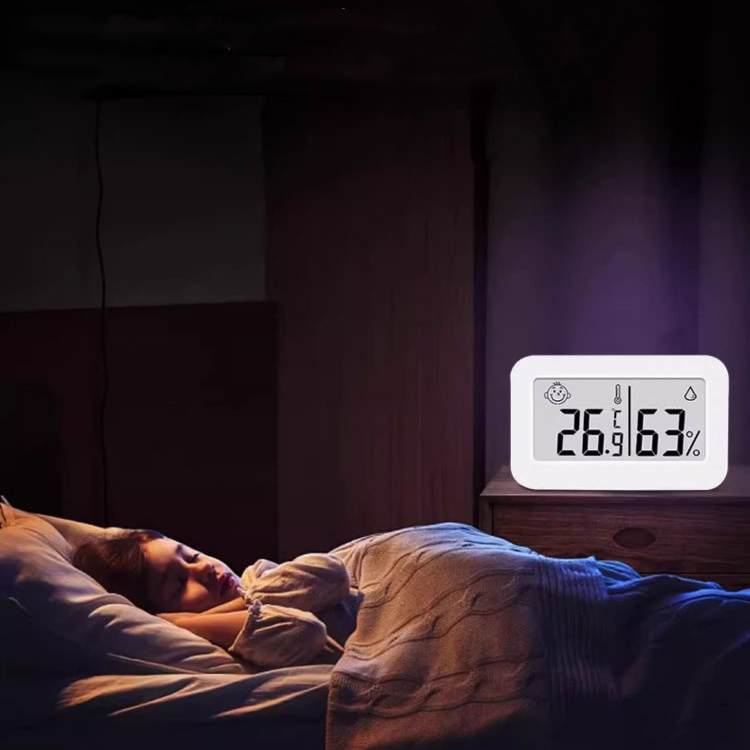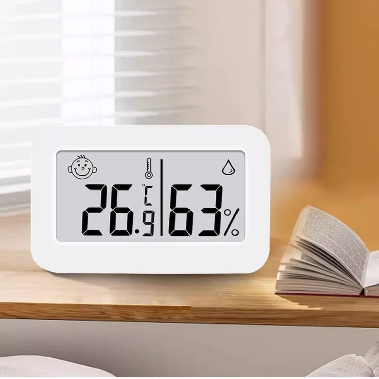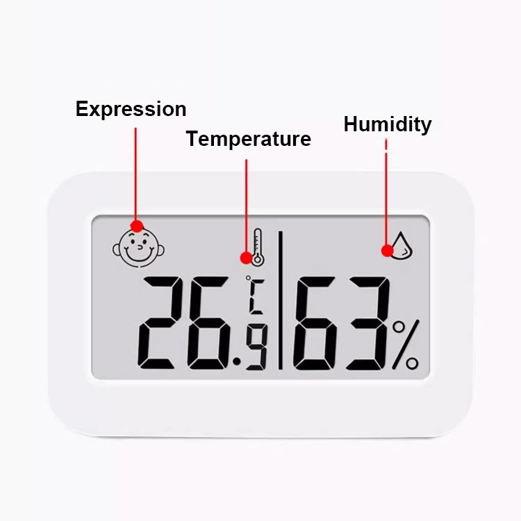 A “cute 表情” - based comfort indicator (e.g., a smiling face for ideal conditions, or frowns for extreme temperatures/humidity).