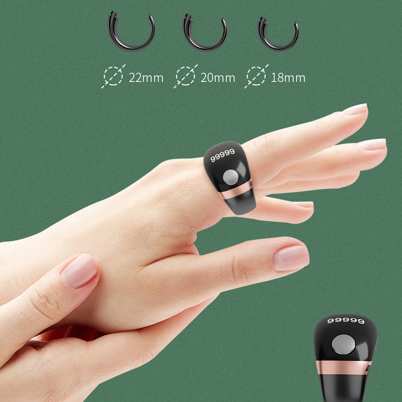 The wearable design is another outstanding highlight. Its finger ring support is adjustable in 3 precise size gears: 18mm, 20mm and 22mm, which can flexibly adapt to different finger thicknesses of most users. The ergonomic adjustable structure ensures stable and comfortable all-day wearing without tight constraint or easy falling off, perfectly fitting on fingers for hands-free continuous counting.