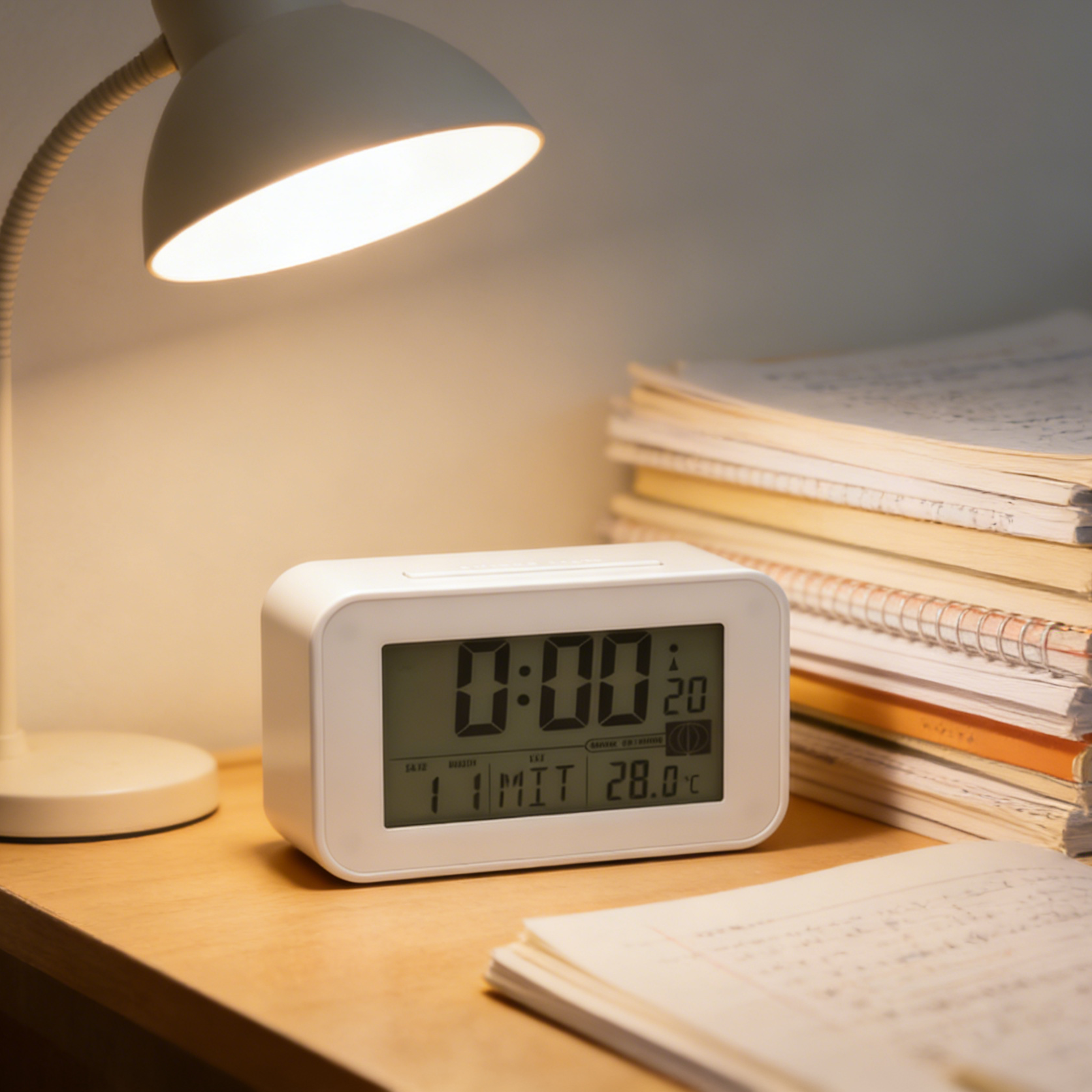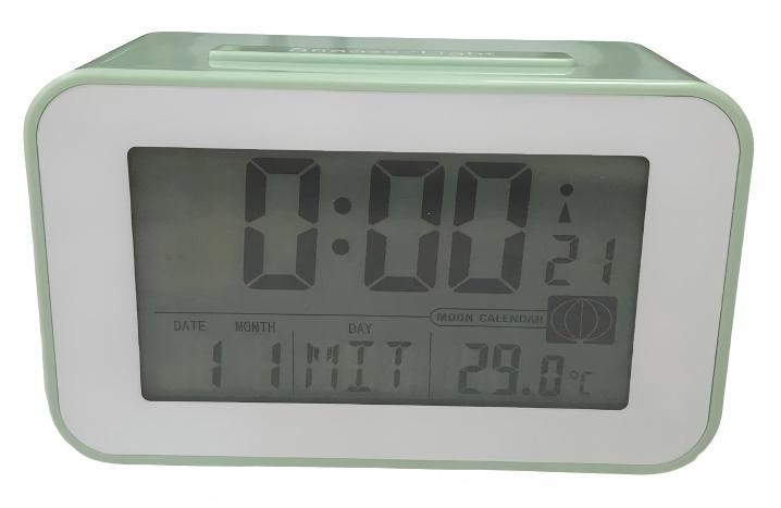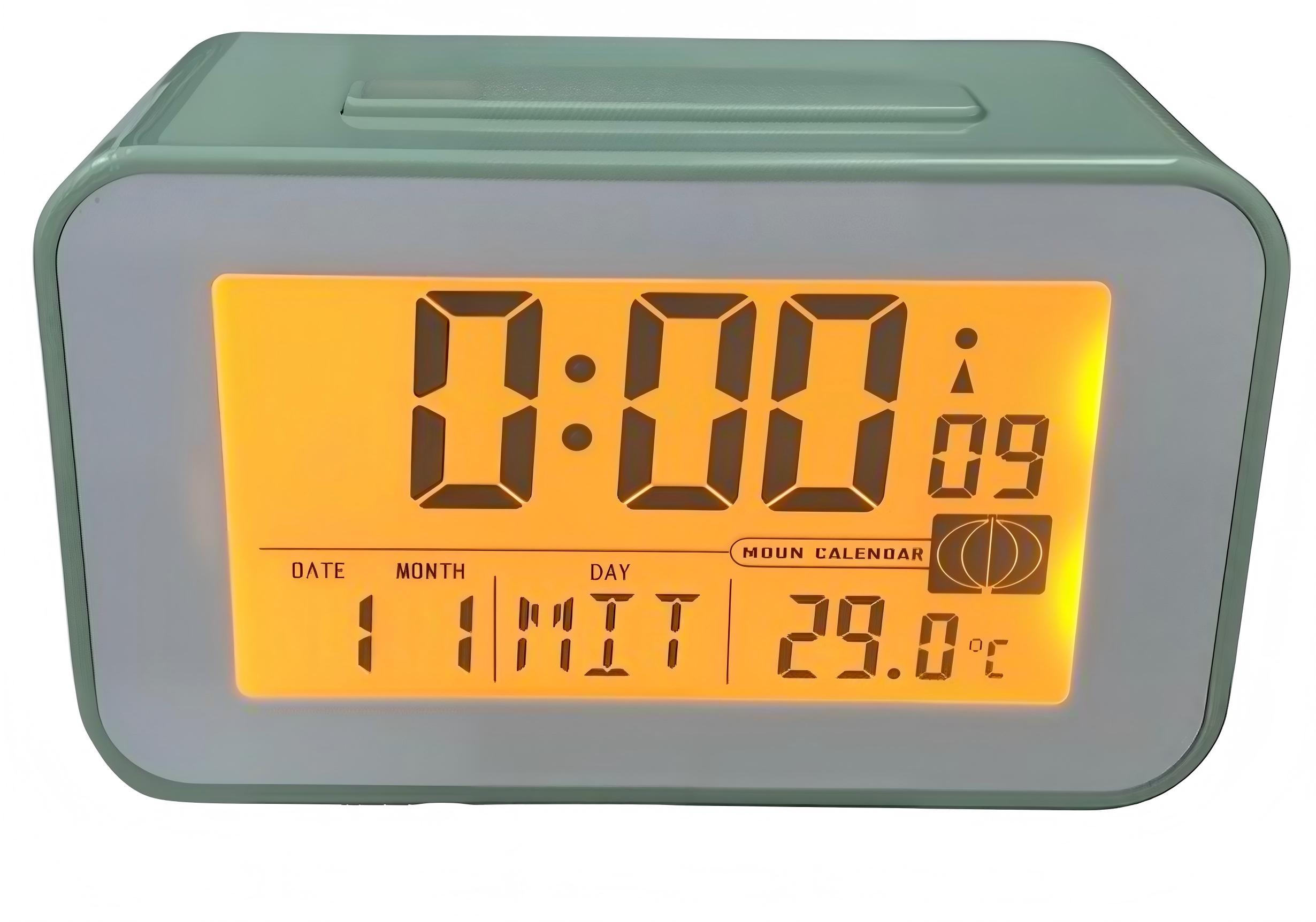 At its core, this clock prioritizes clarity and convenience with a large, easy-to-read display that consolidates essential information at a glance. The bold, high-contrast digital time display is paired with a secondary panel showing the date, month, day of the week, real-time indoor temperature, and even a lunar phase indicator—ideal for tracking seasonal changes or planning outdoor activities. For low-light environments, the optional warm yellow backlight ensures visibility without disrupting sleep, while the crisp monochrome display remains easy to read in bright daylight.