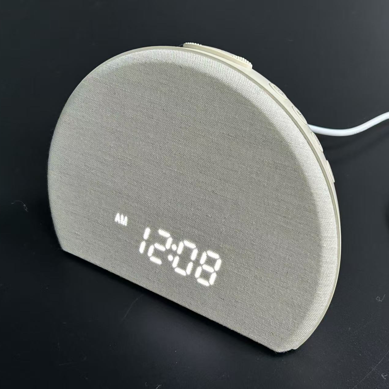 Meet the Sunrise Alarm Clock—an all-in-one bedside essential designed to transform your sleep routine with nature-inspired wake-ups and customizable ambient comfort. With its sleek, semi-circular fabric finish, this device blends seamlessly into any bedroom decor while packing powerful features to help you fall asleep easier and wake up refreshed, free from jarring, stressful alarms.
