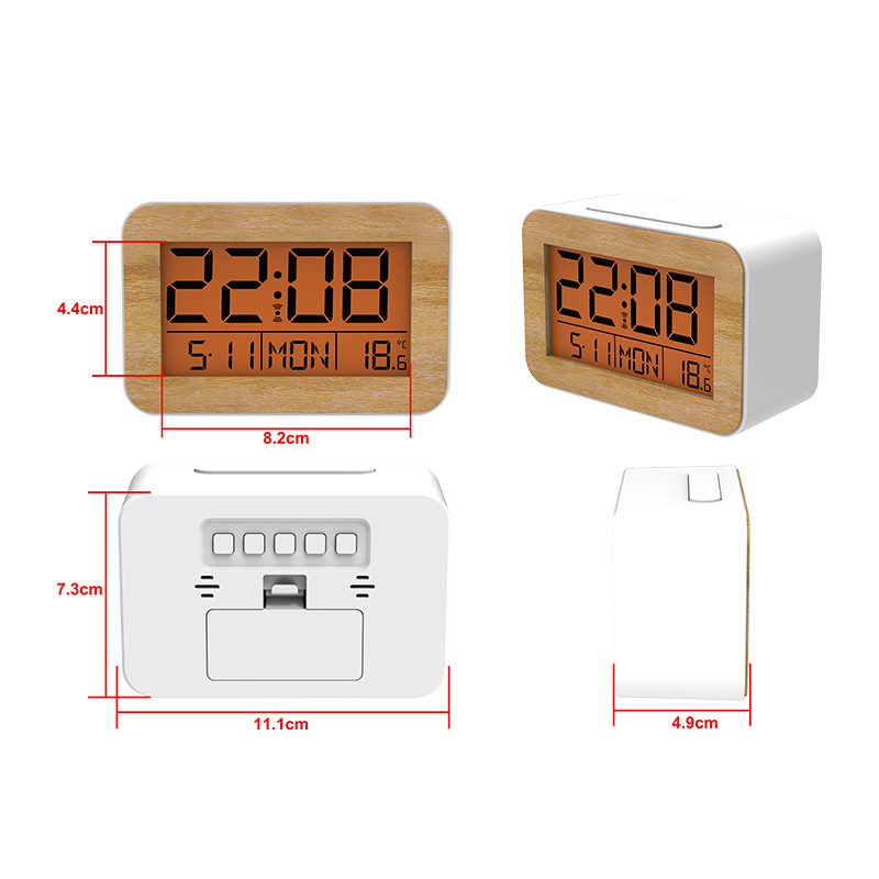 Elevate your daily routine with the Wooden Grain Digital Alarm Clock—a sleek, all-in-one timekeeping device that blends minimalist aesthetics with powerful functionality, designed to keep you organized, comfortable, and on schedule. Crafted with a faux wood-grain front panel and durable plastic casing, its compact profile (11.1×7.3×4.9cm) effortlessly complements any interior style, from cozy bedrooms and home offices to contemporary living spaces, serving as both a practical tool and a subtle decorative accent.